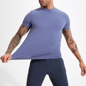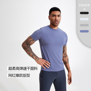 通気性が薄い屋外徒歩フィットネス速乾衣男氷糸トレーニング運動tシャツ弾力半袖ネット赤版