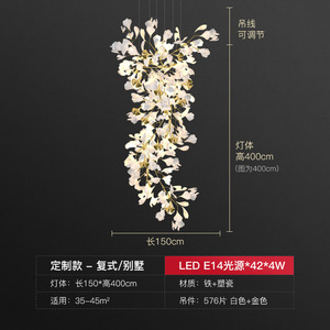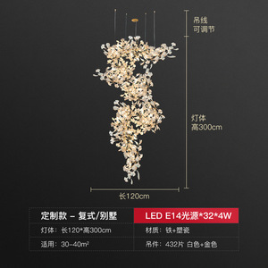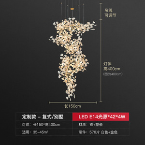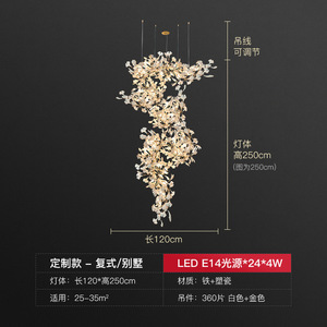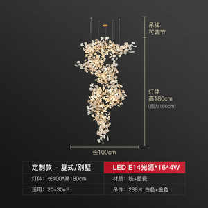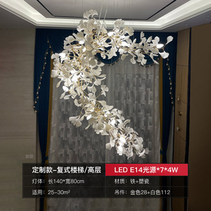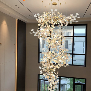 クロスボーダーラージシャンデリアロフト階段ライト高級ヴィラ中空スリップアップリビングルームロビー営業部イチョウの葉ランプ