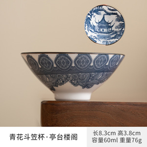 青花の闘笠の杯の杯の陶磁器の杯の家庭用の工夫の杯の主人の杯の杯の杯の杯の単一の小さいコップの杯の棚の茶器