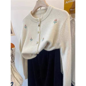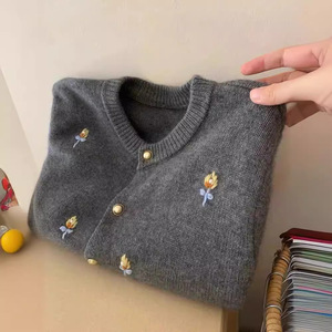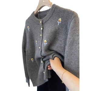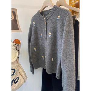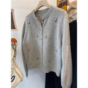 灰色のアライグマの綿毛のセーターのコートの女性の春秋2024の新型の乳のfufuの怠惰なニットのカーディガンの上着は推薦します。
