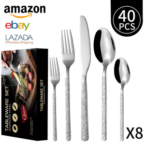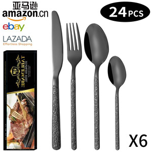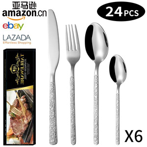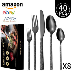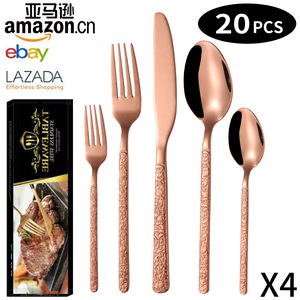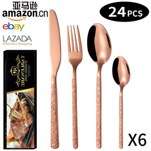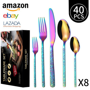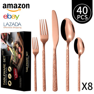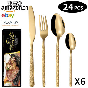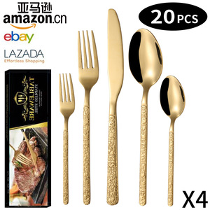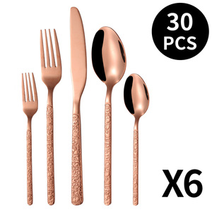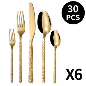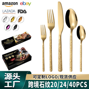 中東風ストーンパターンステンレス食器セット(20/30/24/40点) チタンメッキ洋食器ステーキナイフ&フォーク
