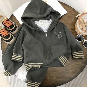 子供の秋の春のスーツの男の子の韓国版の運動のジッパーの上着の子供の韓国版のズボンの2つのセットの外国貿易