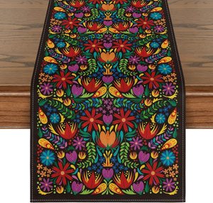 国境を越えて爆発したメキシコ風テーブル旗の多彩な花が家に飾られたレストランのキッチンテーブルクロステーブルのテーブル布茶旗