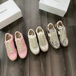 厂家批发外贸原单真皮德训鞋莞产高品圆头系带拼接拼色复古女板鞋