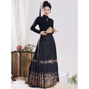 一流の秋冬ファッション中国風馬面スカートオリジナル漢服気質痩身ハイウエストスカート痩身