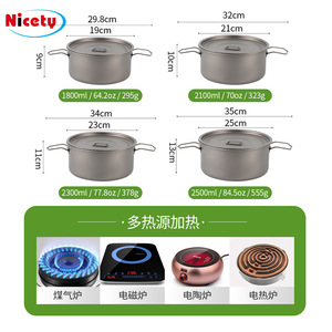 屋外キャンプスープ鍋純チタン調理器具セット鍋キャンプ鍋蓋付き野炊飯鍋双耳鍋大容量携帯