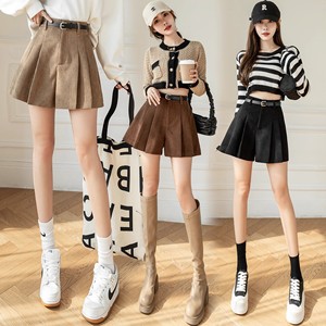 高腰ズボンのスカートのカーキ色の美の半ズボンの女性のプリーツのスカートのズボンの秋冬の外はヨーロッパの商品のカジュアルなa字のコーデュロイを着ます。