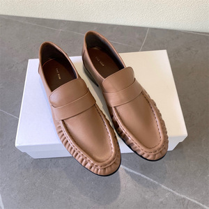 Theホワイトrow超柔らかいウナギの皮紋楽福靴女2024新型真皮フランス通勤シンプル靴女