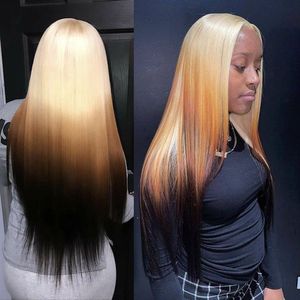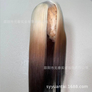 ゴールデンブラウングラデーションハイライト化学繊維ウィッグクロスボーダーヨーロッパとアメリカブロンドオンブル 13*4 レースフロント