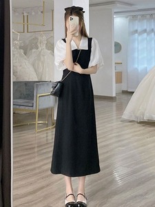 2025年夏の新作婦人服、少し太った女性向け、痩身、年齢軽減、ウエストを細く見せるストラップ付きロングスカート、フレンチスタイルのドレス