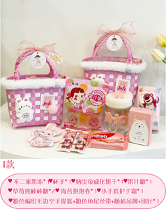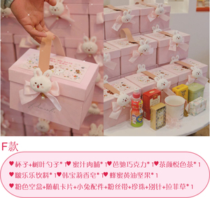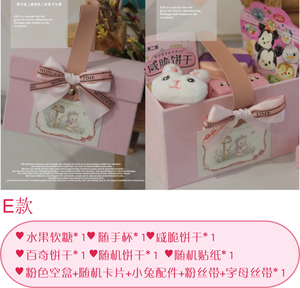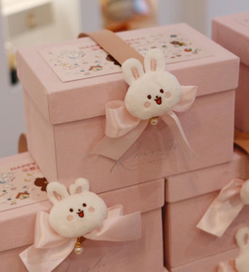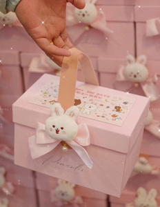 ピンクのポータブル空箱 + ランダムなクマのステッカー + ウサギのアクセサリー + ファンリボン + レターリボン [内容物なし] 内寸は約21cmx12.5