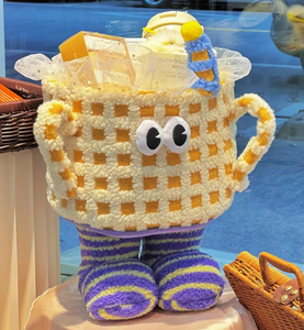 クリームイエローのメッシュリトルモンスター空ハグバスケット+スターヤーン【内容物なし】【内口直径約25cm、高さ18cm、全高約29cm