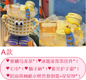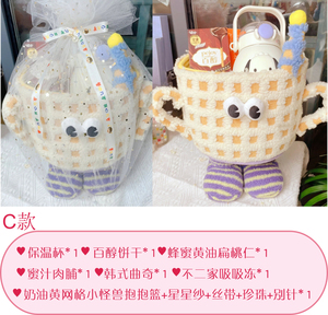 クリームイエローメッシュリトルモンスター空ハグバスケット+スターヤーン+リボン+パール+ピン【内容物なし】【内口直径約25cm、高さ18cm】