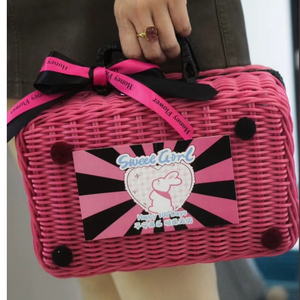 ピンクの編み込みローエッジ空手バスケット + ピンクのフィッシュテールリボン + ランダムタグ + ピン [内容物なし] 底約16×横幅10×高さ14cm