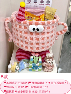 ピーチピンクメッシュリトルモンスター空ハグバスケット+スターヤーン+リボン+パール+ピン【内容物なし】【内口直径約25cm、高さ18cm】