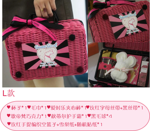 ローズレッドの空箱 + ピンクのイングリッシュリボン + ローズレッドのリボン + ランダムなウサギのステッカー、内寸は約21cmx12.5cmx12.5cmです。