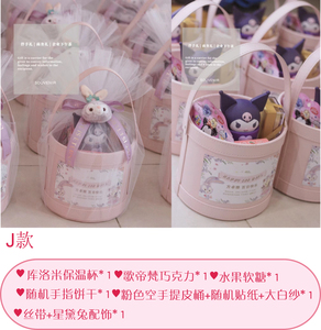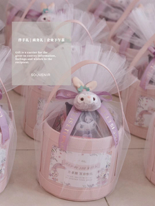 ピンクの空のポータブルレザーバケツ + ランダムステッカー + 大きな白いガーゼ + 紫のイングリッシュリボン + Xingdai Rabbit アクセサリー [内容物なし] 外径は約 32x16x19