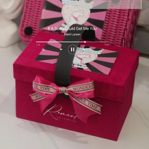 ピンクのポータブル空箱 + ランダムルビーステッカー + ファンリボン + レターリボン [内容物なし] 内寸は約21cmx12.5cmx12