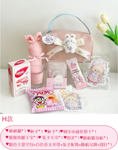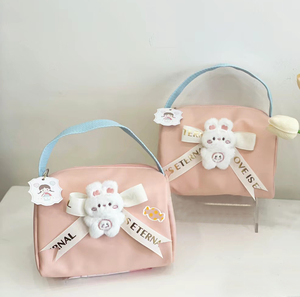 ピンクの空のハンドバッグ + 白のイングリッシュリボン + ウサギのアクセサリー + ランダムなタグ + ピン [内容なし] 約 20*13*13cm