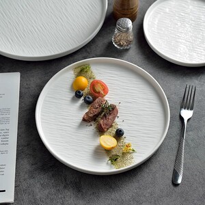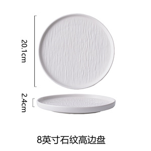 ストーン柄光沢セラミックハイエッジ洋食プレート和風業務用ステーキプレートステーキプレートラウンド芸術的意図プレート