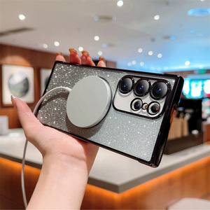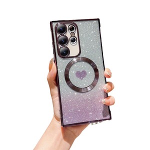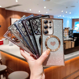 新しいサムスン S24Ultra 磁気強力な磁気携帯電話ケース電気メッキ愛グリッター S24FE/S25 保護カバー