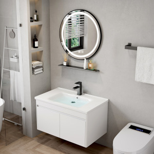 ホテルのトイレの洗面器の組み合わせの小さいタイプの浴室のキャビネットの一体の陶磁器の壁掛け式の洗面器の洗面台