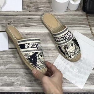 D~Jia スリッポン フィッシャーマンシューズ 2024 夏 フラット刺繍 レイジー包頭ハーフスリップ わら織り 通気性 カジュアル スリッパ