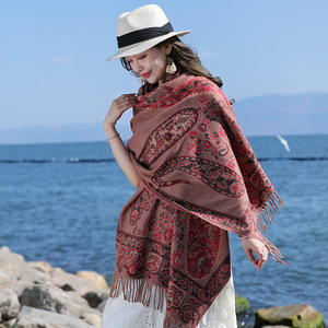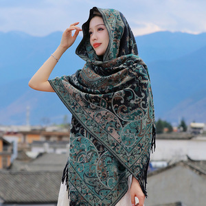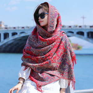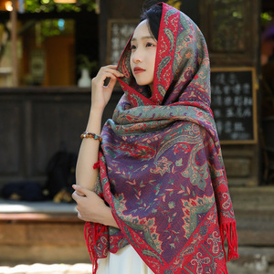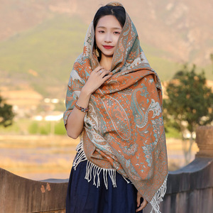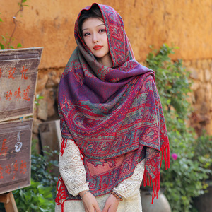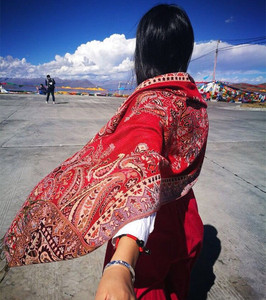 青海チベット雲南麗江観光写真は女性の秋冬の長い民族風のマフラーのエアコンのマントを厚くします。