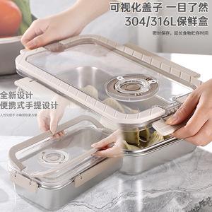316L携帯用鮮度保持ボックス 食品グレードステンレス製 蓋付き大型ボックス 密閉ランチボックス 収納用持ち手付き鮮度保持ボックス
