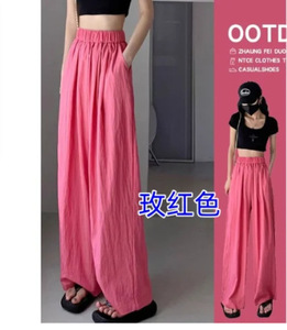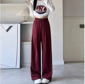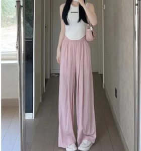 氷糸広腿ズボンの子供の夏の薄いタイプの高腰垂感カジュアルな日本の怠惰感山本ズボン綿感ストレートパンツ