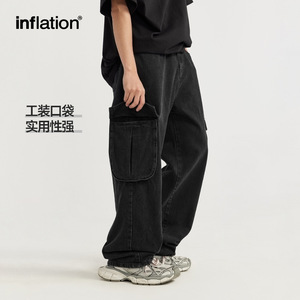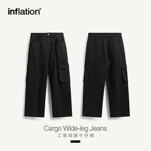Infメンズ | 水洗い工装広脚ジーンズ2024春夏新品潮牌街頭直筒ゆるいズボン男
