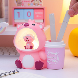 クリエイティブかわいいベラウサギのペンライト多機能スターライト収納ペンホルダー子供寝室デスクトップ装飾置物