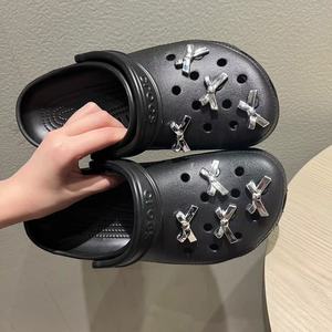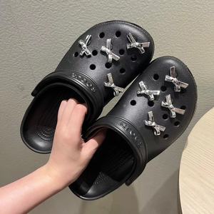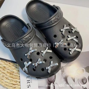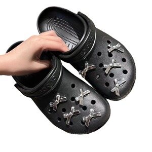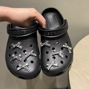 メッキ銀色の蝶結びの穴の靴のバックルの立体diyは甘いクールなギャルの靴の花の装飾の卸売りを取り外します。