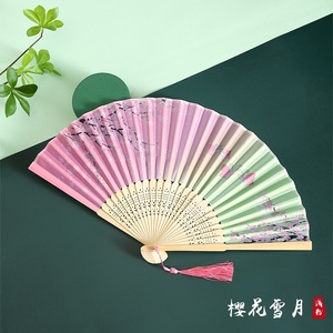 古風扇子扇風機中国風漢服女性チャイナドレスダンスダンス児童学生は夏に折り畳み扇風機を持ち歩いた