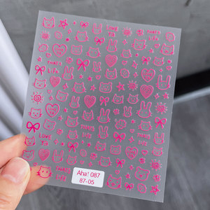ネット赤爆金かわいいネイルシール落書き小動物花蝶模様薄靭立体ネイルシール卸売り