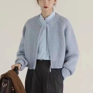 灰色のアライグマの毛の短いファスナーのセーターのコートの女性の春秋の復古の怠惰な風の外はニットのカーディガンを着ます。