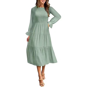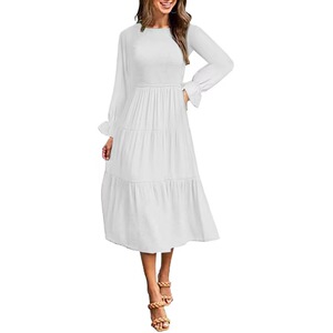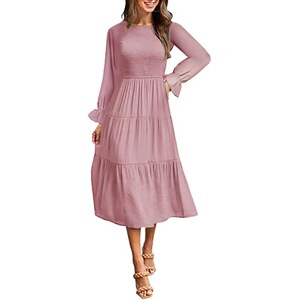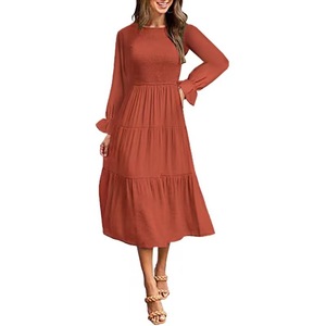 2024年欧米の国境を越えた女装アマゾンの爆品ラッパ長袖のタック層が大きくワンピースを飾った女性