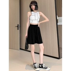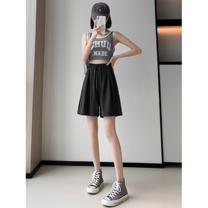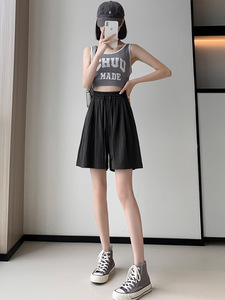 氷の糸の垂れ下がった感の半ズボンの女子学生の夏の薄い金は腰のゆったりしている大きいサイズのまっすぐな筒の涼しくてまっすぐな足の5分のズボンを締めます。