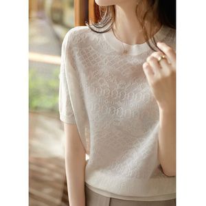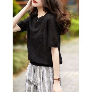 フレンチレースの透かし編みの半袖tシャツの女性の薄いタイプの夏の韓国版の百合の気質の丸首のゆったりしている上着