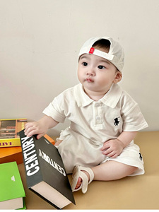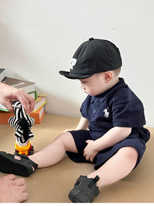 赤ちゃんの夏の薄いスーツの男の子の赤ちゃんの夏服の子供のファッションの半袖poloシャツのtシャツの半ズボンの洋風の2