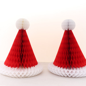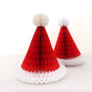 クロスボーダークリスマスハニカム帽子クリスマス新年店ショーウインドー内外装飾用品赤い紙ハニカムボールクリスマス帽子