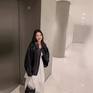 春秋レザージャケット レディース ヴィンテージ風 ショート丈 バイクジャケット 小柄さん向け ゆったり 黒 レトロスタイル 2024