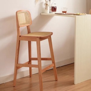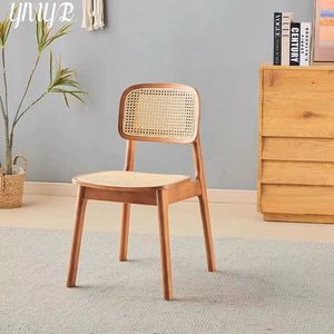 北欧籐椅子ホームバルコニー籐椅子特別な背もたれライト高級レジャー無垢材ダイニングチェアホテルB&Bダイニングチェア