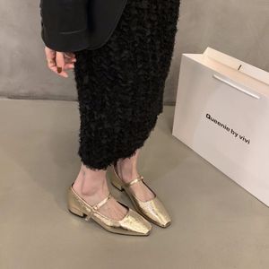厚底シルバーメリージェーンシューズ婦人靴2025春秋新作スクエアトゥフレンチスプリングスカート付きイブニングシューズ