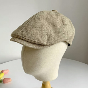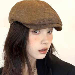 日系綿麻前進帽子男女復古純色大頭囲英倫短軒街頭鴨舌帽子対外貿易クロスボーダー