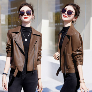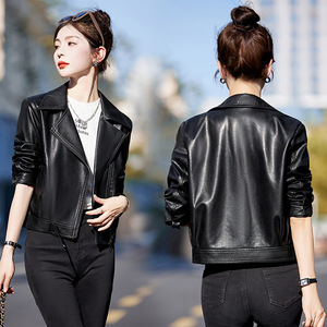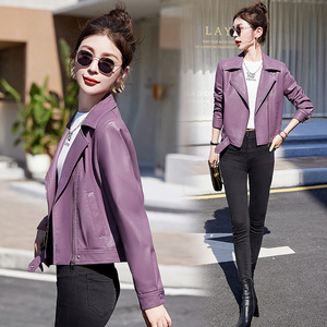 海寧レザージャケット レディース 2025春秋新作 バイク用羊革 おしゃれショート丈 若見えレザージャケット