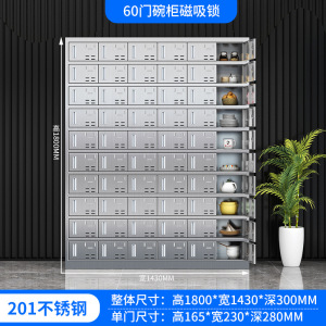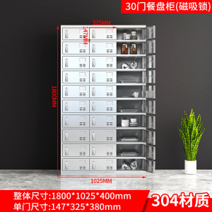 304 ステンレス鋼の食器棚、食堂のディナープレートキャビネット、従業員食堂の食器収納キャビネット、ロック可能なランチボックス収納キャビネット付きマルチドア