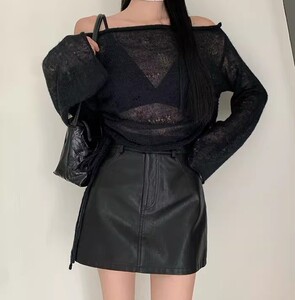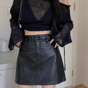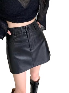 女性の小さい皮のスカートの半身のスカートの短い1歩の韓国版のスカートの高腰のa字のスカートの黒色のpu皮は秋冬に合わせます。