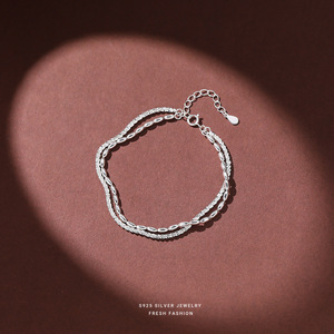 S925純銀ブレスレット二重満天星米粒銀珠手串女ins手飾り銀アクセサリーが親友カップルに贈る