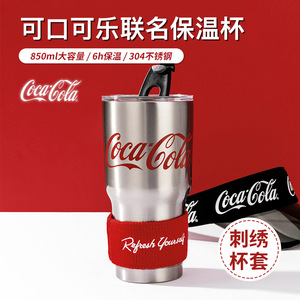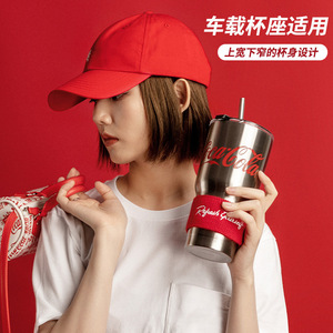 厂家定制 可口可乐联名吸管保温杯针织杯套 不锈钢水杯套